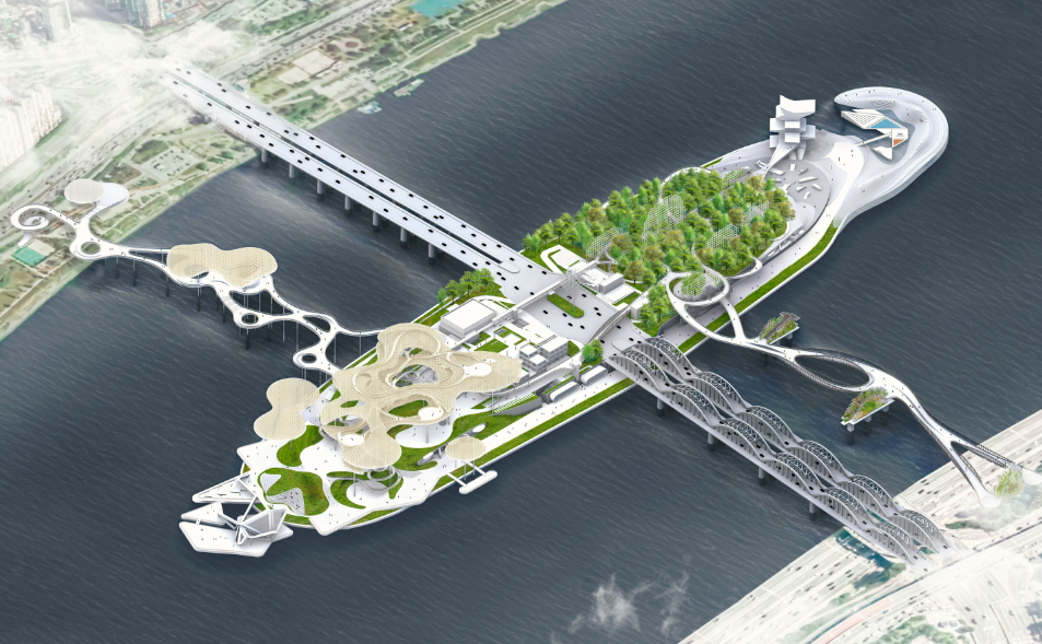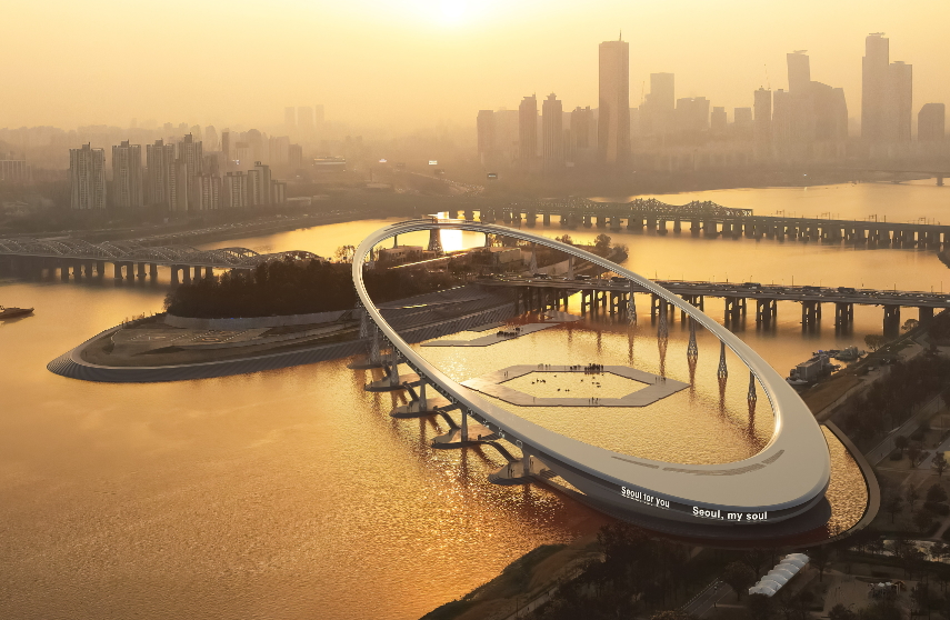 특히 노들섬 위에 구름 모양 구조물을 만들고 그 위로 구불구불한 공중 산책로를 내서 구름 위를 걷는 느낌을 줍니다.