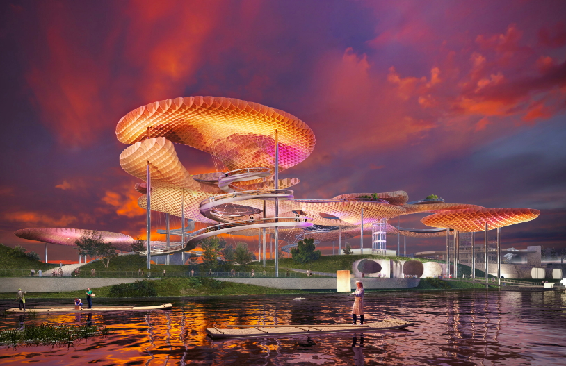 노들섬 동쪽에는 한국의 석탑을 본뜬 워터타워를 배치했고 그 아래엔 야외 수영장을 넣었습니다.